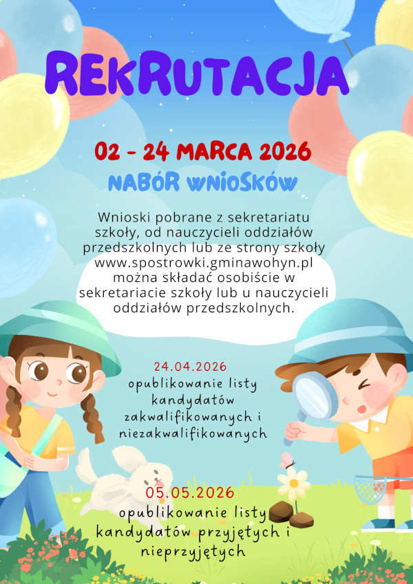 Dyrektor Szkoły Podstawowej w Ostrówkach informuje o rekrutacji dzieci do