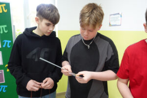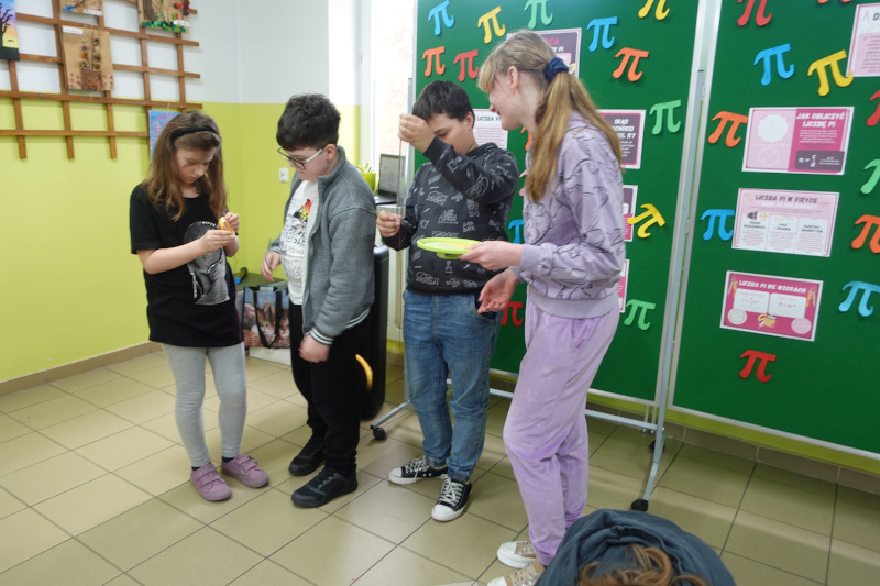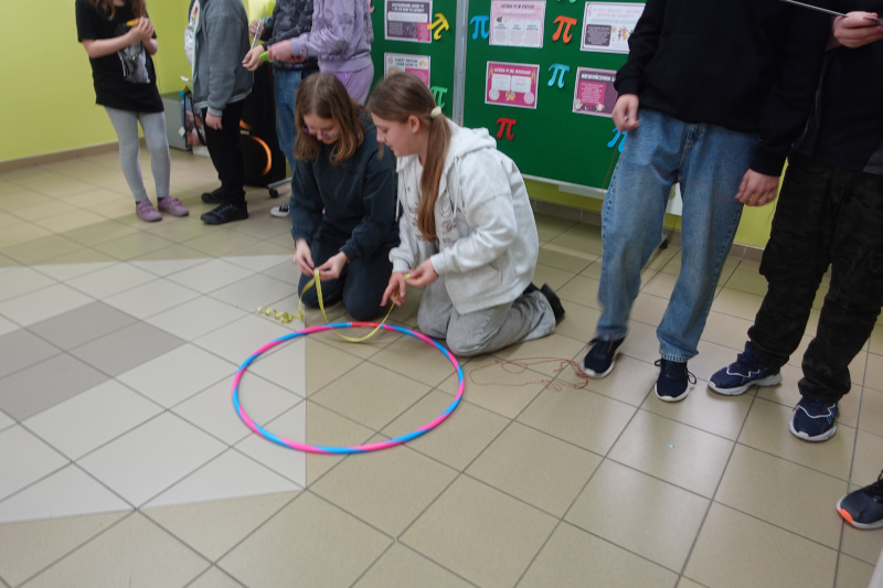 Z okazji dnia liczby Pi spotkaliśmy się na bardzo okrągłym spotkaniu, które toczyło się i toczyło, ale nie za długo. Zaczęliśmy od poezji, później przeszliśmy do królowej nauk – rozwiązywaliśmy zagadki matematyczne i doświadczalnie wyznaczyliśmy wartość liczby Pi. Uwieńczeniem spotkania była bardzo długa ludolfina, ale zobaczcie sami.